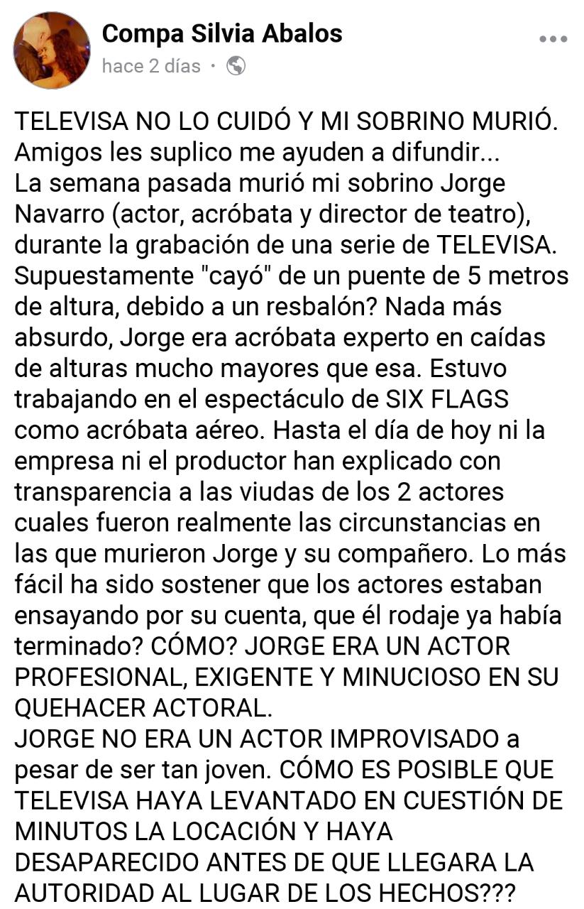 Por otro lado, desde los directivos de la Asociación Nacional de Actores (ANDA) hasta diversos integrantes del medio artístico han exigido que se esclarezcan las circunstancias en las cuales los dos actores perdieron la vida. Culpan a Televisa y a las condiciones precarias de los actores en muchas producciones.