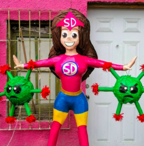 Susan Distancia la heroína mexicana que promueve mantener una sana distancia ante la pandemia de coronavirus en México, y que apenas fue presentada a los nacionales el 20 de marzo, ¡ya tiene su piñata!.