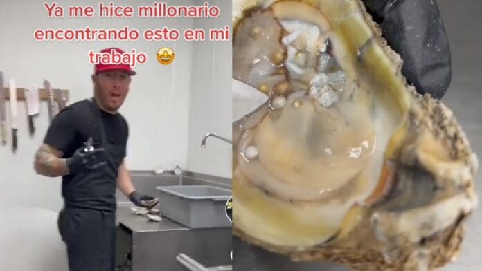 Fue a través de TikTok, que el trabajador mostró la ostra la cual tenía entre 5 a 7 perlas de diferentes tamaños, aunque sospecha que puede tener más pues a medida que movía las partes de la ostra se veían otras escondidas.