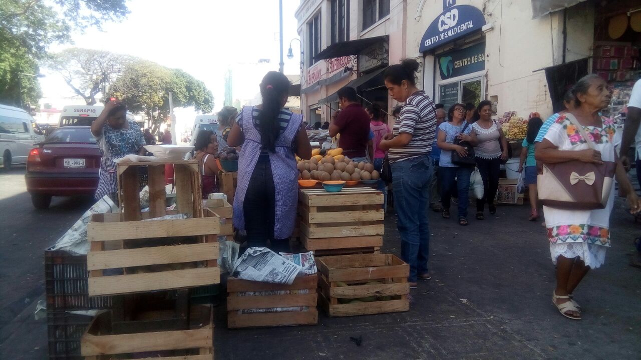 Mérida, Yucatán.- En los alrededores del mercado Lucas de Galvez hay alrededor de 450 puestos ambulantes, una cifra alta en la ciudad de Mérida.