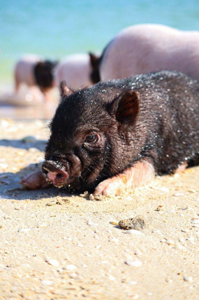 Estos cerditos se ven felices en la preciosa playa de Progreso, aunque no siempre han sido así de plenos, pues hace un mes fueron abandonados en Yucalpetén.