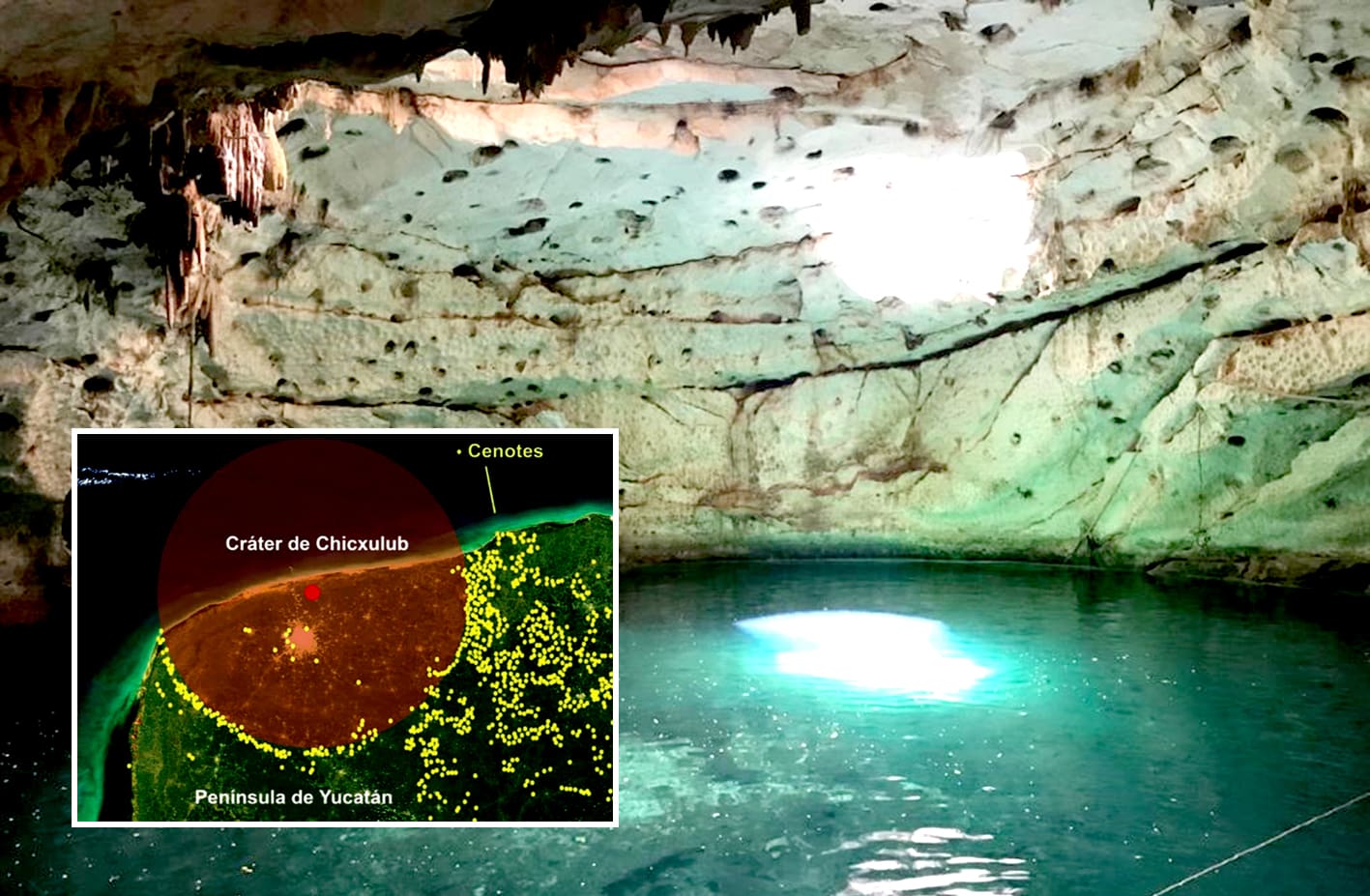 El anillo semicircular de cenotes de Yucatán abarca 58 municipios y es consecuencia del impacto del meteorito Chicxulub, que chocó con la Tierra hace unos 65 millones de años, y formó una zona semicircular de gran permeabilidad, señaló el investigador.
