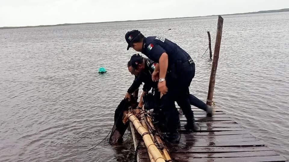 “Durante los recorridos de vigilancia y apoyo a la población, elementos de la Secretaría de Seguridad Pública (SSP) vieron a un perro que había sido amarrado en el muelle de Río Lagartos y que con la creciente quedó en el mar”, señalaron las autoridades en un breve comunicado.