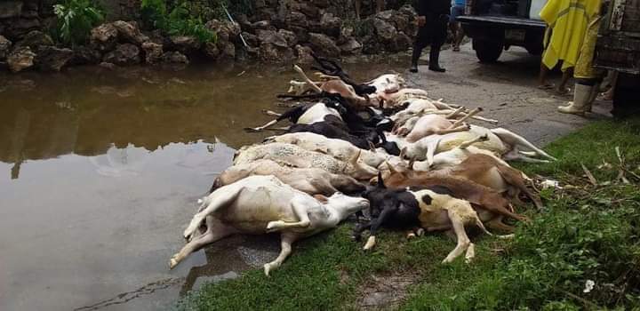 En estas imágenes se ve como tras el descenso del agua se aprecia cómo hay varios animales sin vida, quienes murieron ahogados.