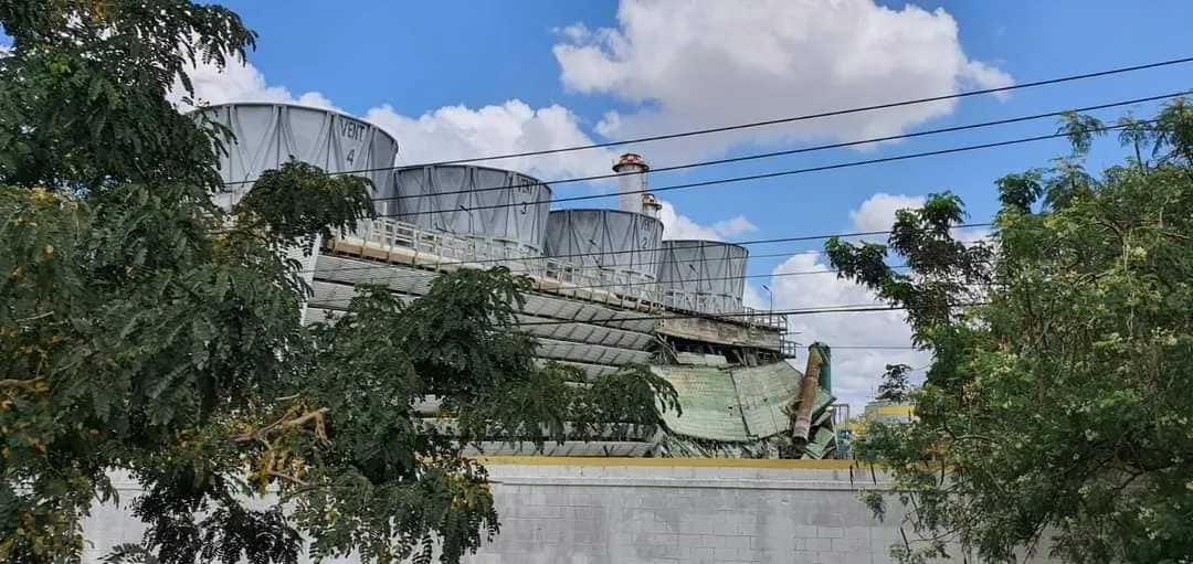 La torre de enfriamiento en la torre de la central termoeléctrica de la CFE se vino abajo y colapsó al sur de Mérida.