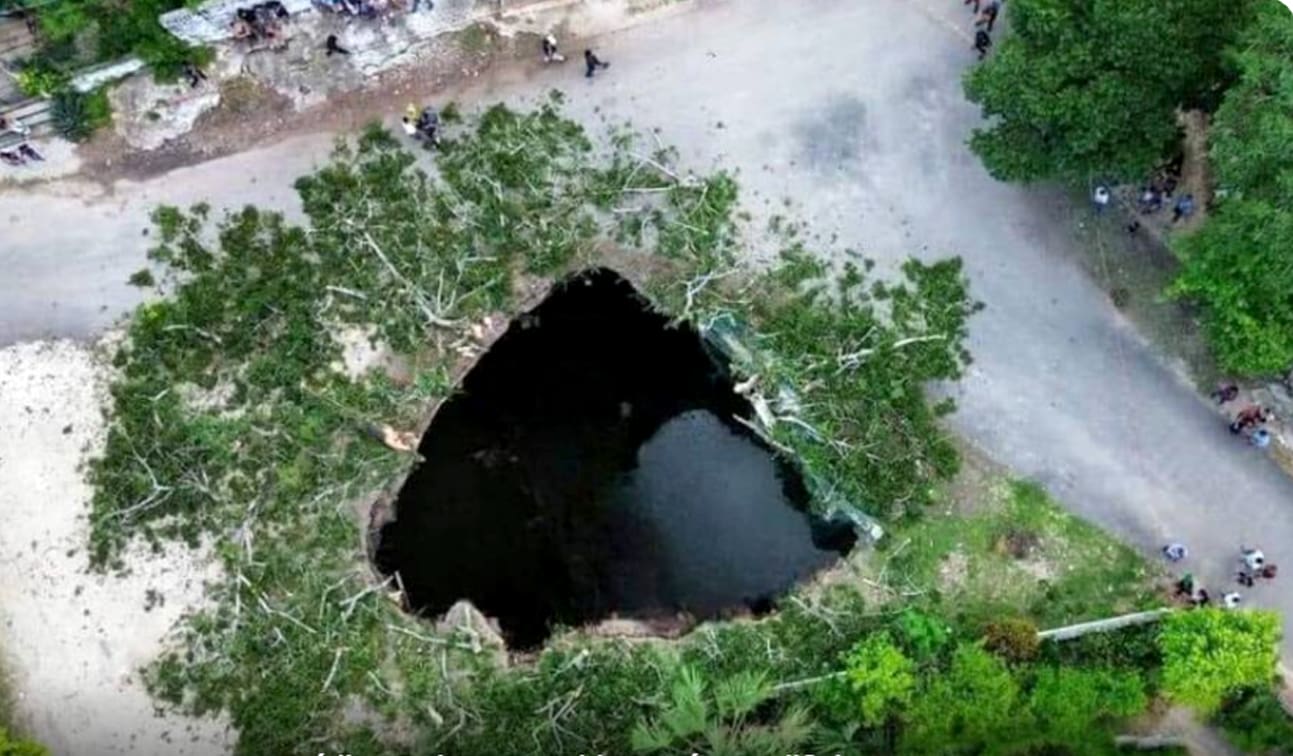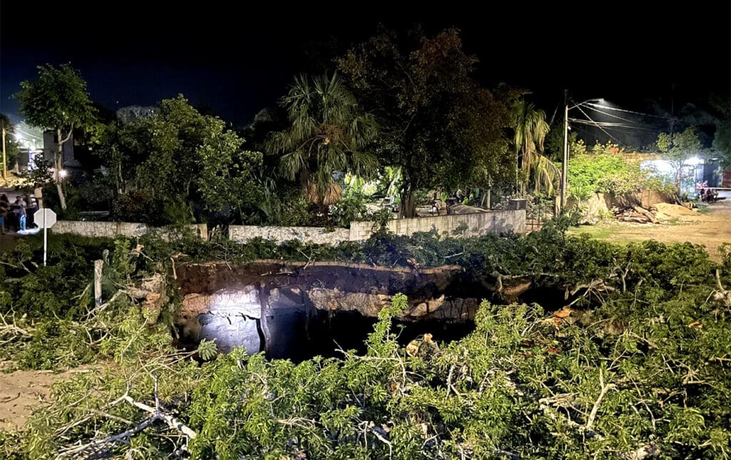 La noche del domingo 4 de agosto ocurrió el desplome de tierra que se tragó una enorme ceiba en un predio de Sahcabá, en la comisaría de Hocabá, cerca de la carretera federal Mérida-Valladolid, a una cuadra de la plaza principal el poblado.