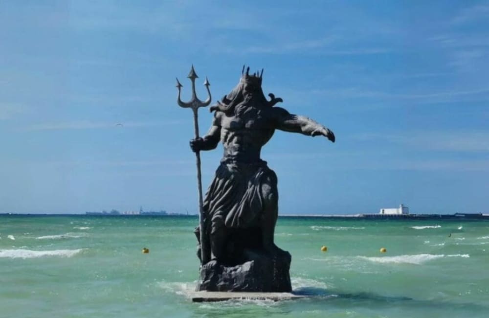 A quien se le haya ocurrido la idea colocar una estatua de Poseidón en el mar de Progreso, Yucatán, al parecer cometió un gran error.